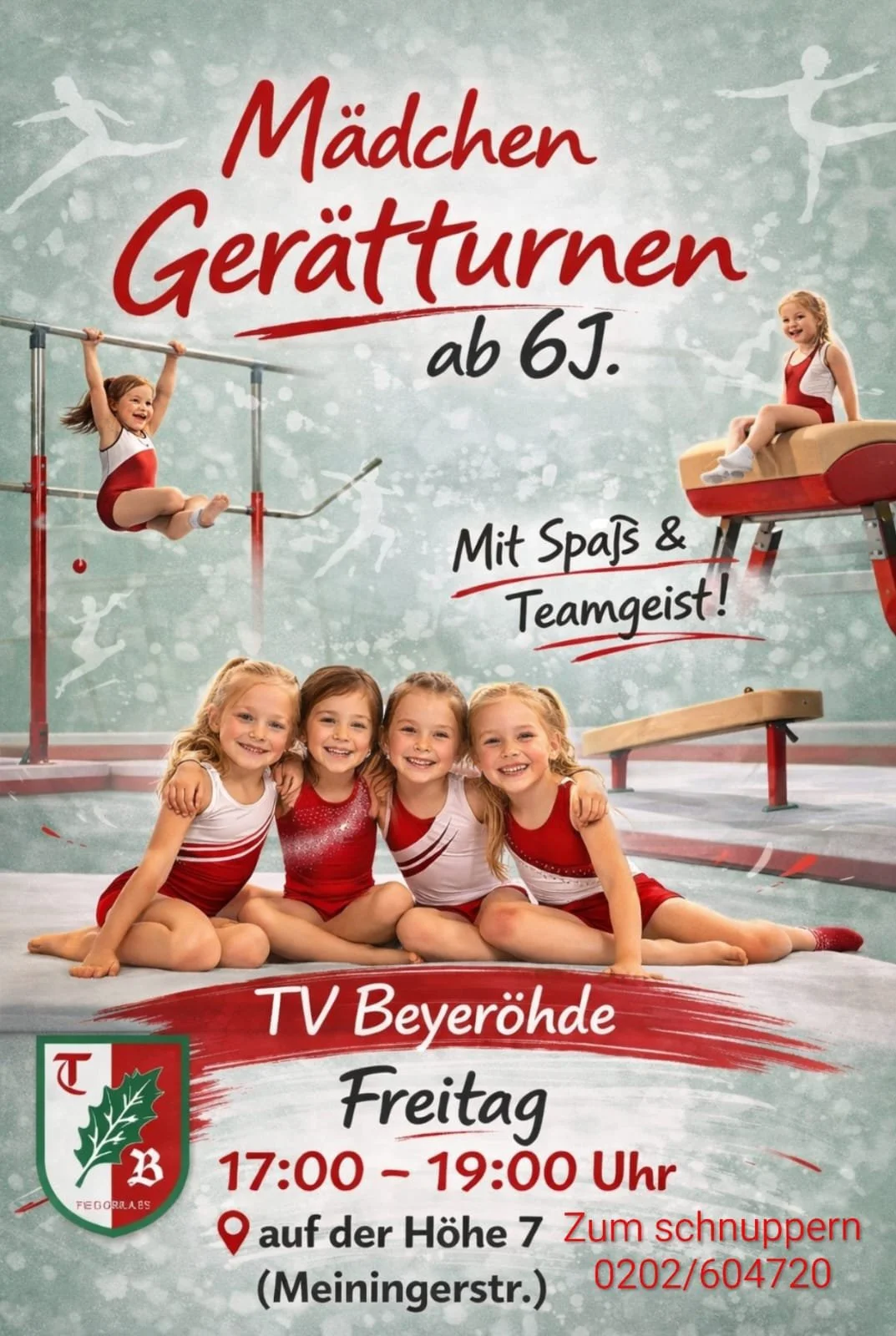 Das Turnen findet jeden Freitag unter professioneller Leitung statt. Rückfragen gerne unter der 0202/604720